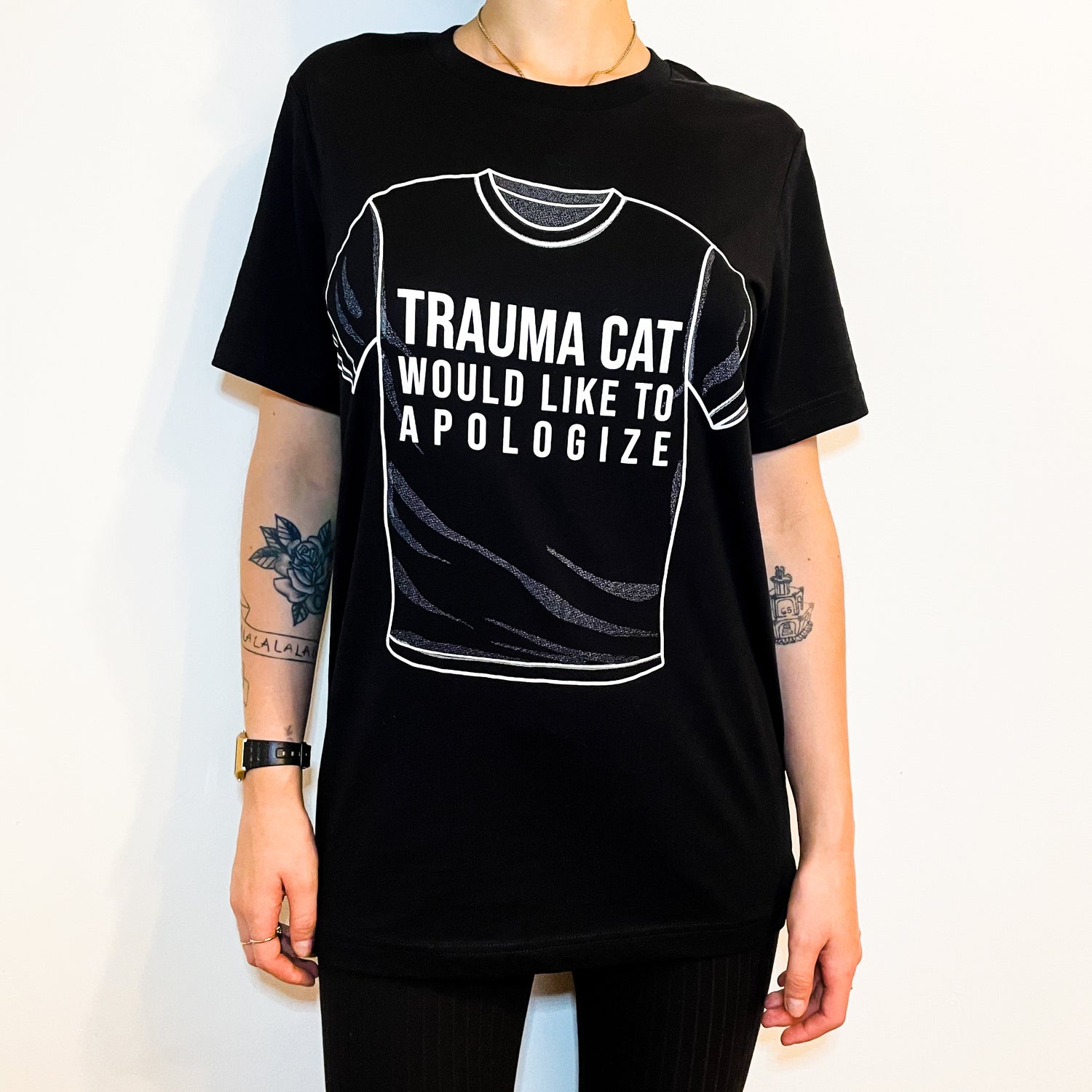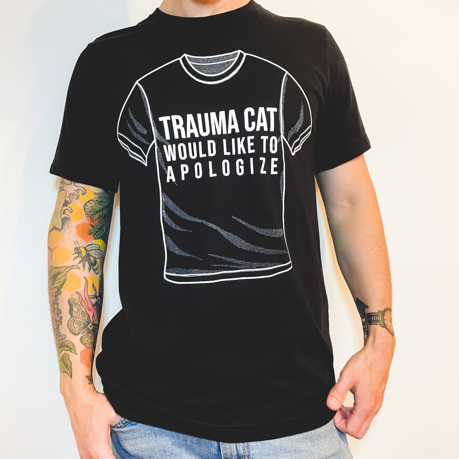 This unisex black Bella Canvas tee will hurt your brain, and for that we are extremely sorry. In fact, we apologize right on the shirt — the shirt that's on the shirt, that is. But then again, doesn't that mean it's also on that shirt? Ugh. We can't believe we're doing this. 😿