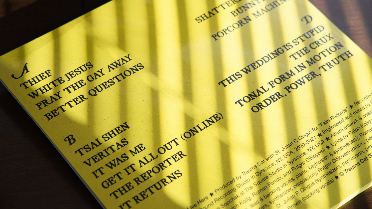 Our second full-length album is now available on vinyl! Are your peers harboring doubts about your being a "music" person? Do you lie awake at night, paralyzed with fear that your coworkers might think you're only saying you're into "indie" bands for clout, and that you're one key LP short from becoming your friend group's own Anthony Fantano? Well, we can fix that. Just buy this record and invite everyone you know over for a "listening party." Tell them Trauma Cat is an independent band that they've never heard of, and that this is the unauthorized double album that will change their lives forever. Then, apologize.